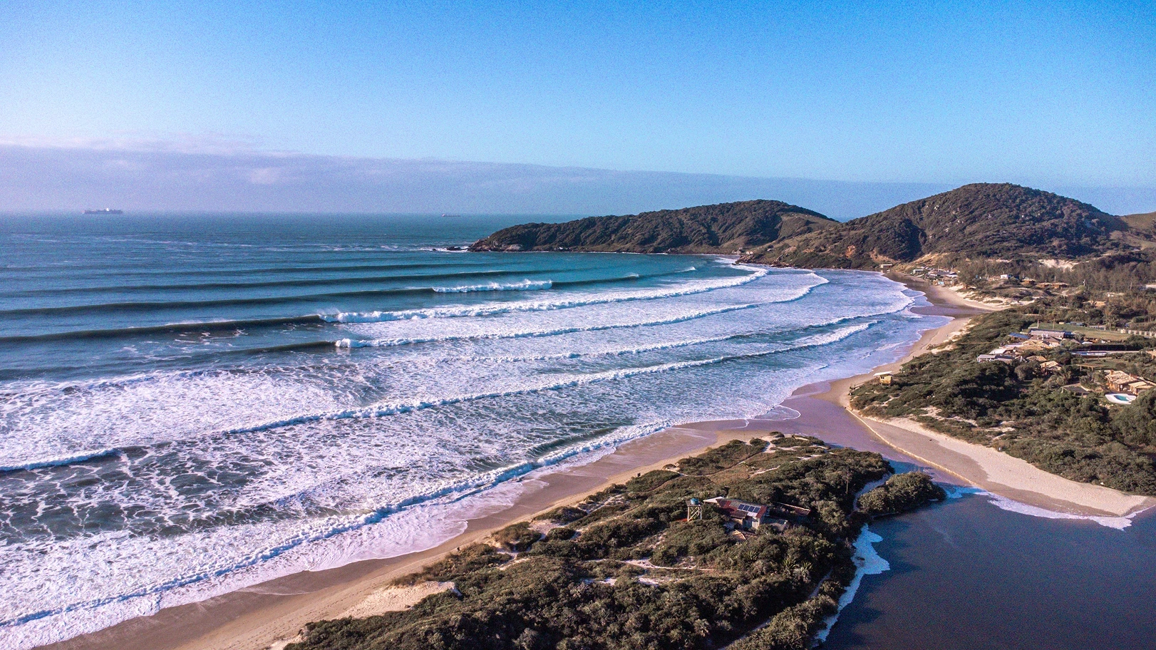 Rodeada de verdes colinas de Mata Atlántica, Praia do Rosa, en Imbituba, es la única playa brasileña en la lista de Las bahías más hermosas del mundo.
